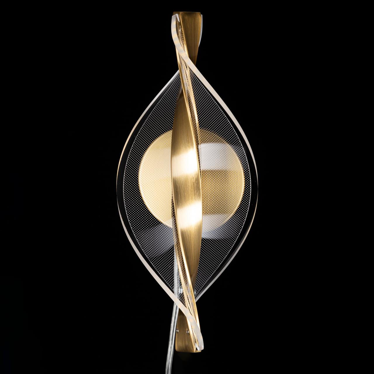 Корпус металлический, цвет благородная бронза. Витой рассеиватель изготовлен из прозрачного оптического акрила с изящной точечной гравировкой.