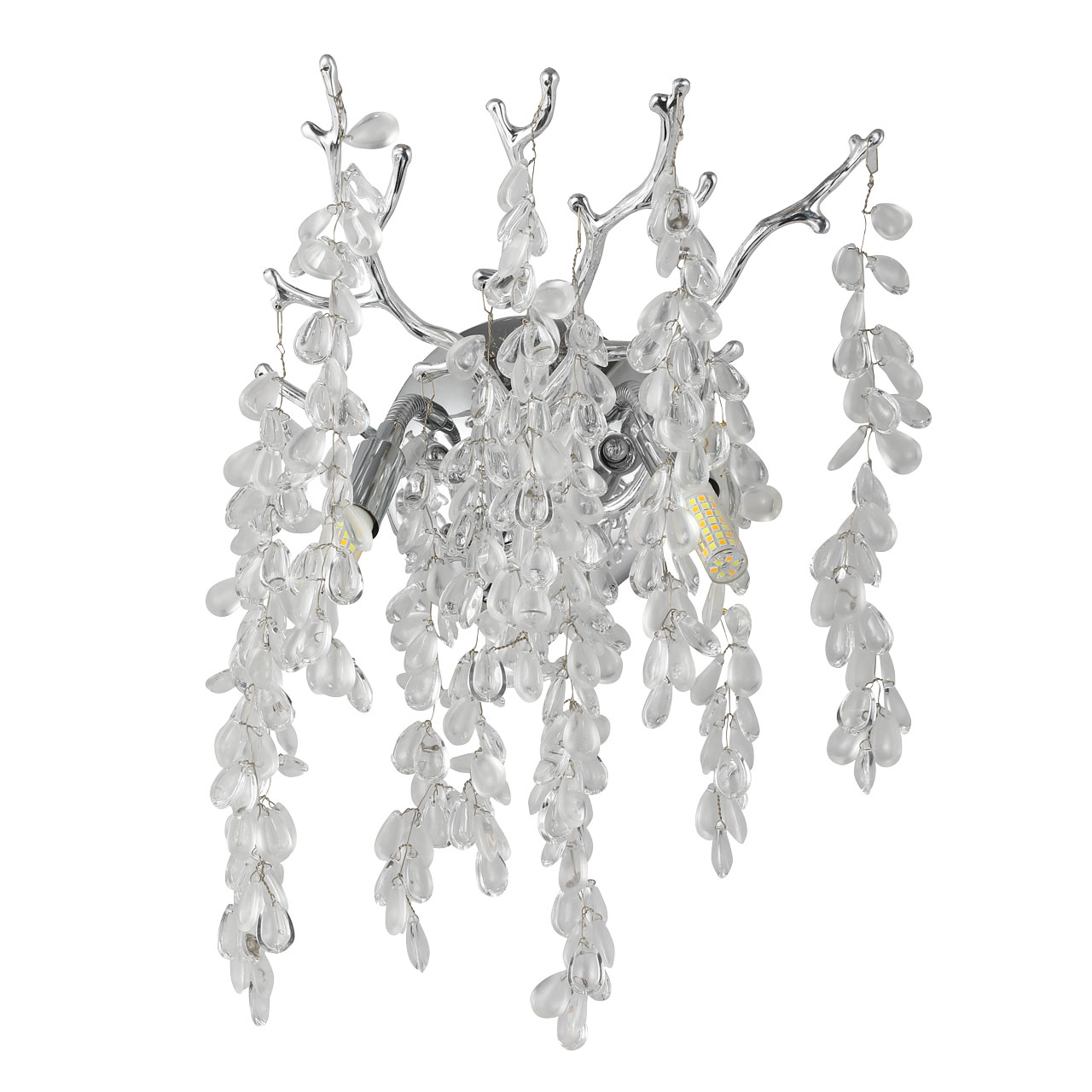 Привлекательная модель 467022702 от немецкого производителя MW-Light относится к коллекции -Лайма, изумительно подойдет для установки в спальне в современном стиле, в бра 2 лампочки с цоколем G9 мощностью 60W площадь освещения помещения 3 кв.м. Материал арматуры металл цвета хром , настенное бра декорировано гроздьями из матового и прозрачного стекла , крепится на планку .Данную модель всегда можете купить в интернет-магазине 220svet.