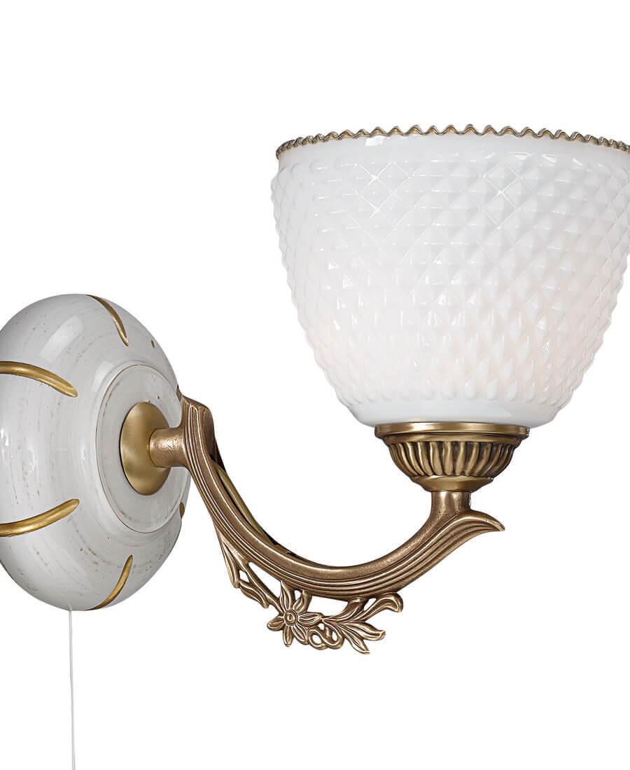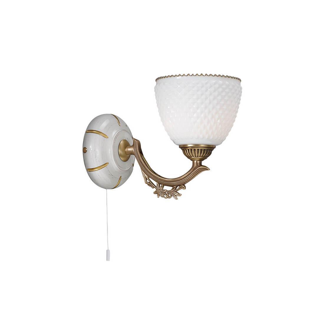 Бра Reccagni Angelo A 8656/1 Итальянского производсва – уникальное сочетание высокого качества и удивительных фактур. Этот светильник Классического стиля хорошо подойдет Для гостиной и придаст помещению мягкий и приятный свет. Плафоны белые из стекла. Арматура бронза из металла. Кол-во ламп - 1шт. Общая мощность 60W