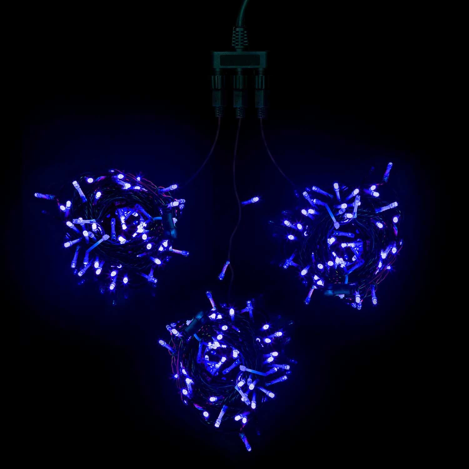 Купить "Комплект 3 Синих Нити с Мерцанием Белого Диода по 20м, 600 LED, Провод Черный ПВХ, IP54 LTC KDD600BLW-11-1B"