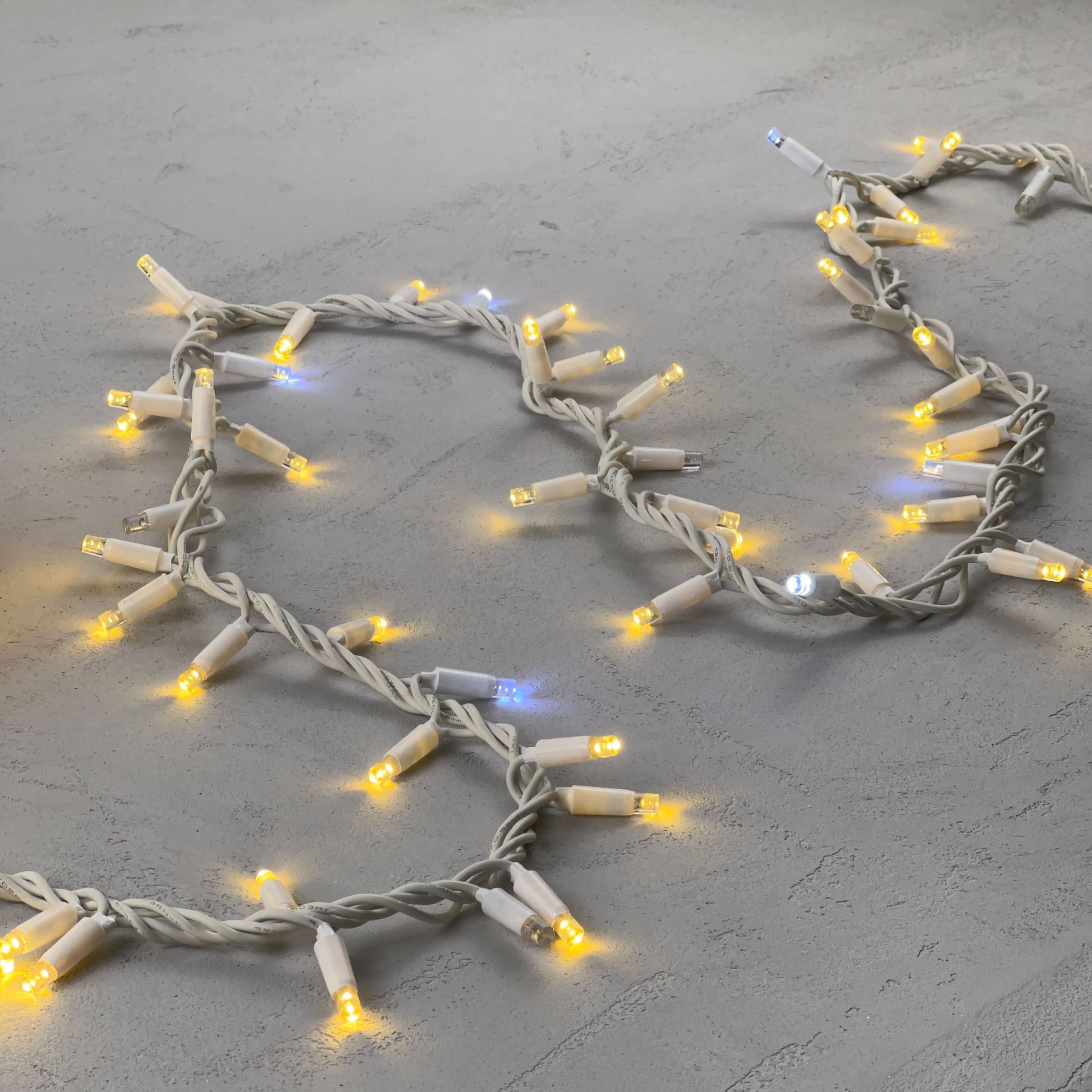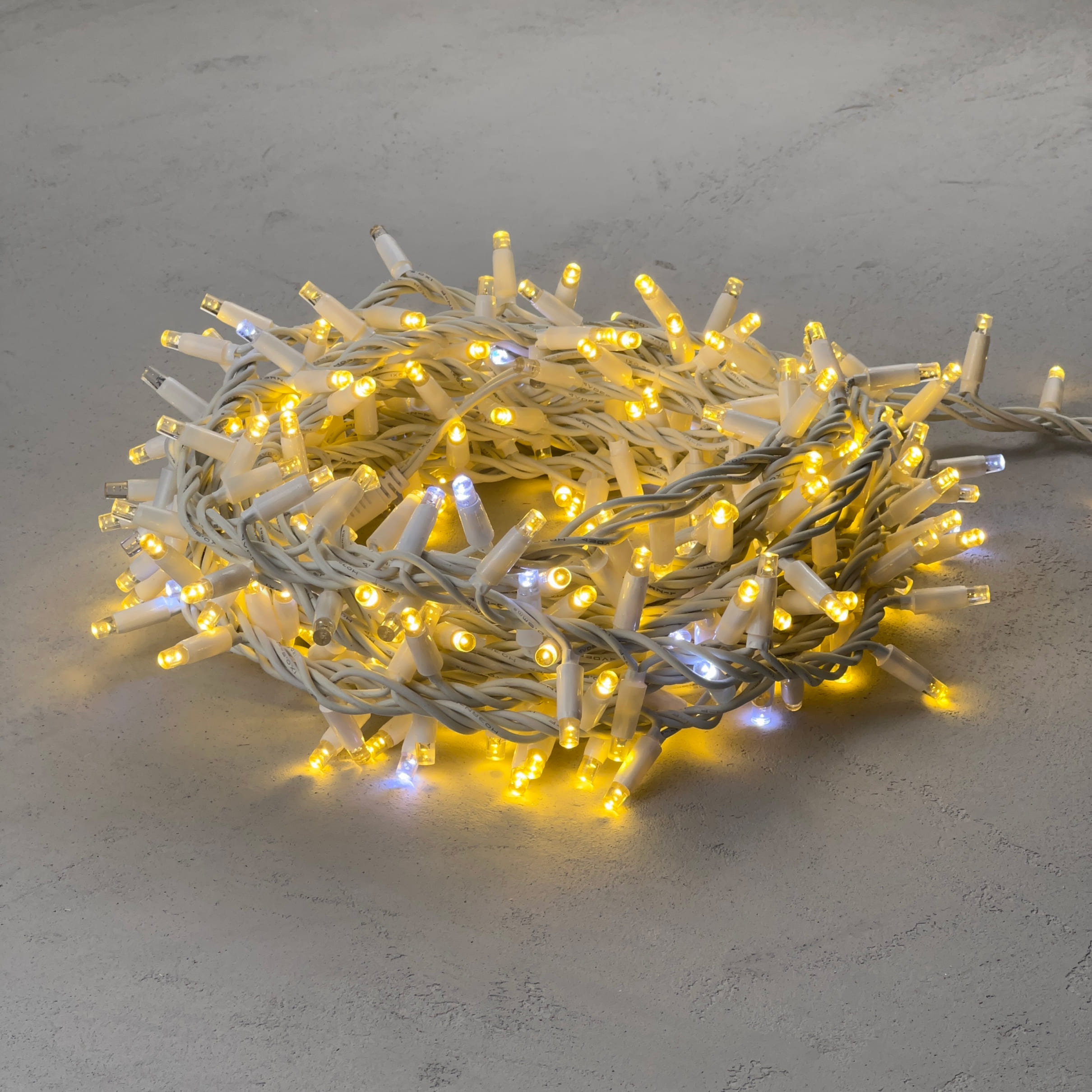 Купить "Гирлянда Нить с Колпачком 10м Тепло-Белая с Мерцанием Белого Диода, 300 LED, Провод Белый Каучук, IP65 LTC PST300BLWCAP-18-2WW"