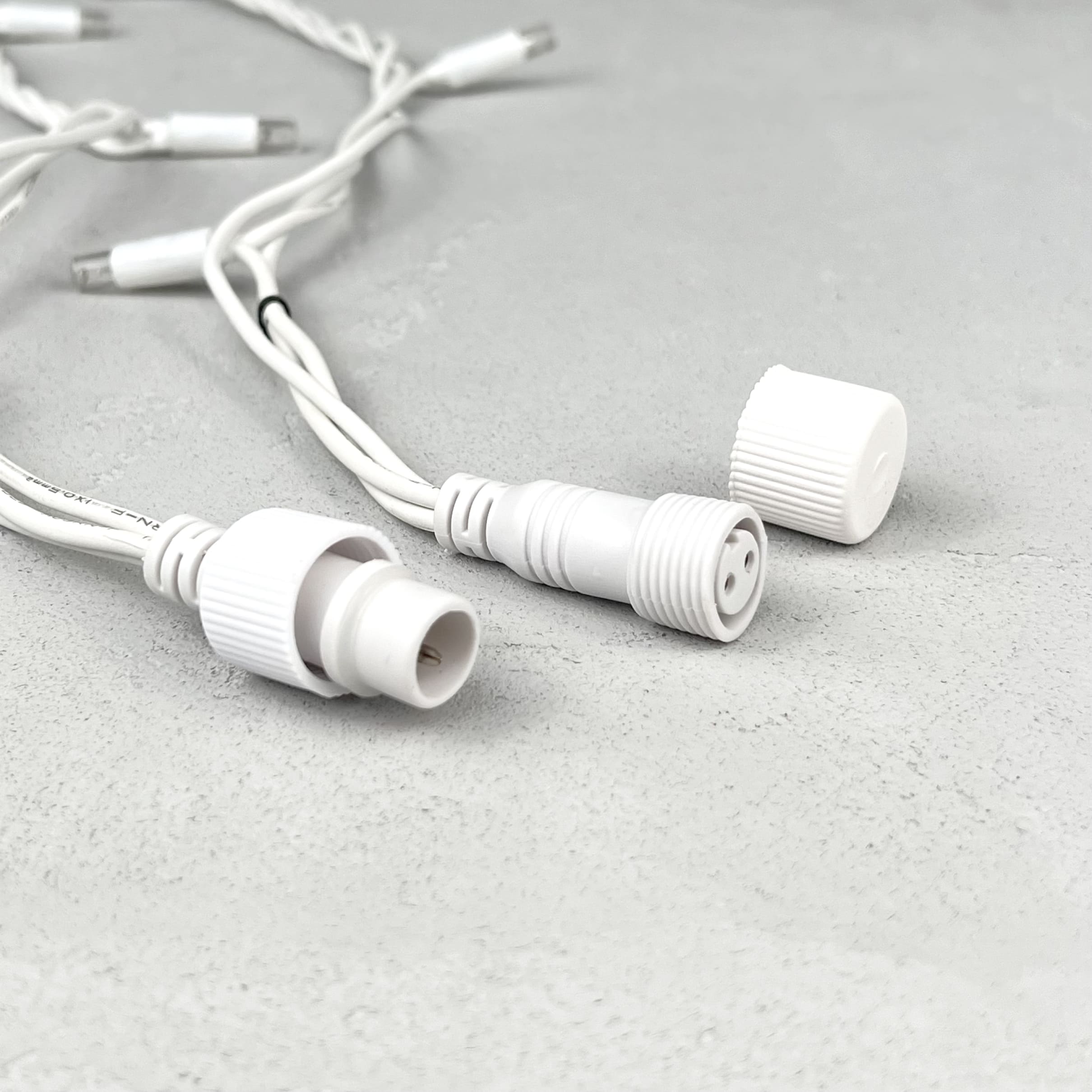 Гирлянда Нить с Колпачком 10м Тепло-Белая с Мерцанием Белого Диода, 300 LED, Провод Белый Каучук, IP65 LTC PST300BLWCAP-18-2WW в Комсомольске-на-Амуре