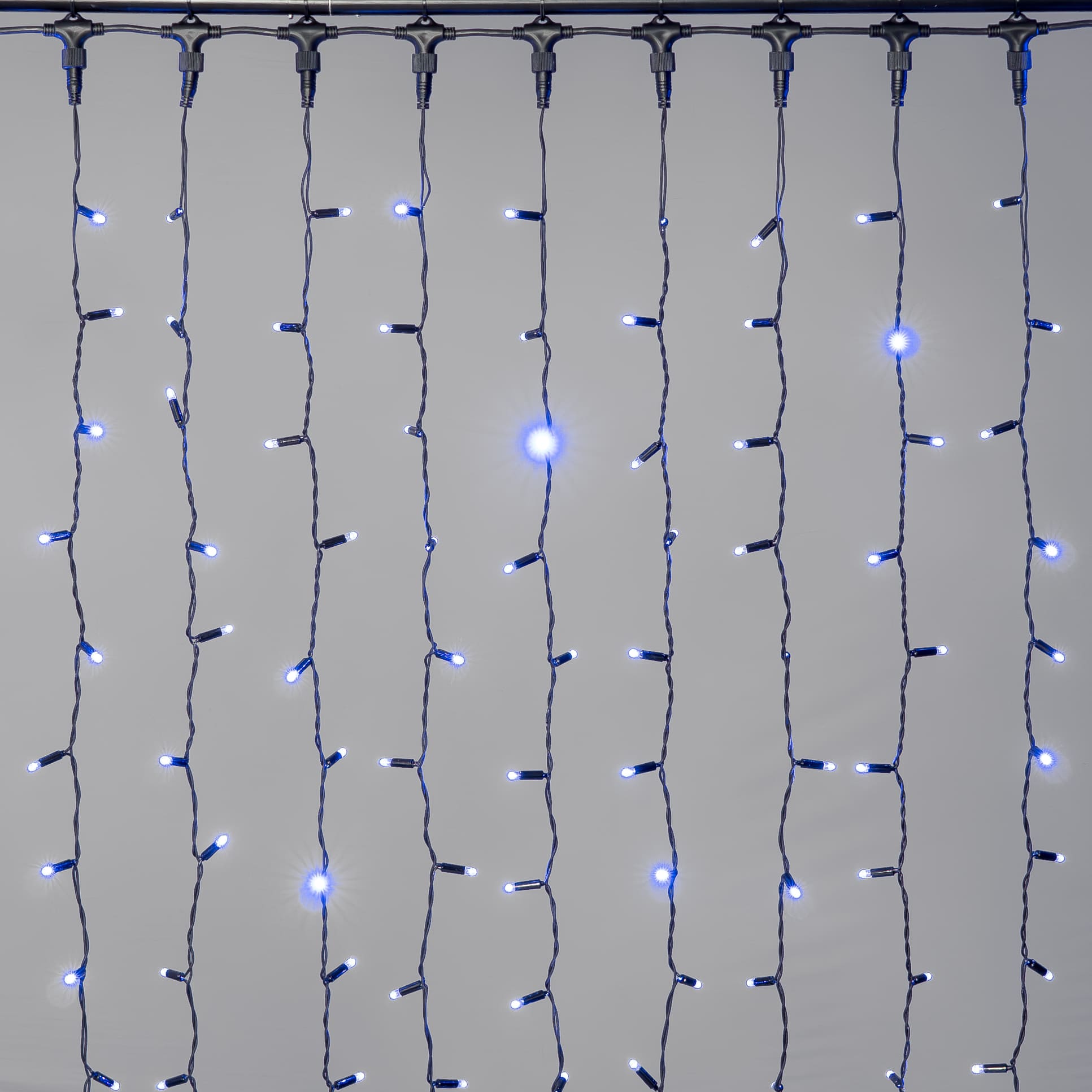 Купить "Гирлянда Занавес 2 x 2 м Синий 220В, 400 LED, Провод Черный Каучук 2,3мм, IP65 LTC ECO402-1-2B"