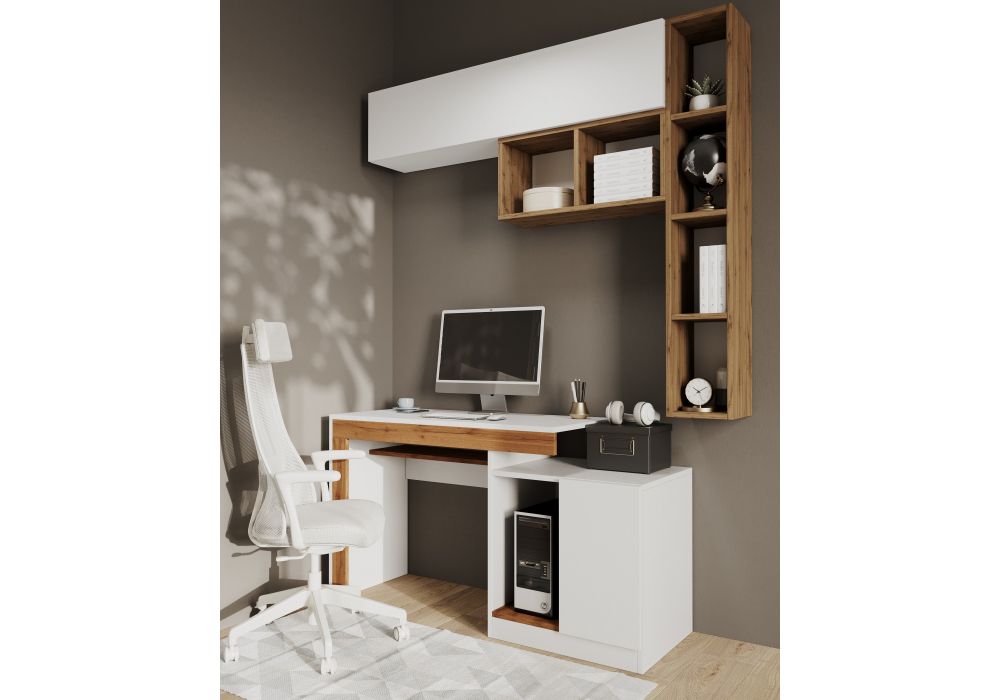 Состав комплекта- компьютерный стол-563539 , полка -563542 , полка -563543 , шкаф -563537 .