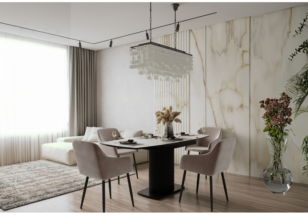 Керамический стол раскладной Woodville Фестер 140(180)х80 белый мрамор snow white / черный 614245 в Комсомольске-на-Амуре