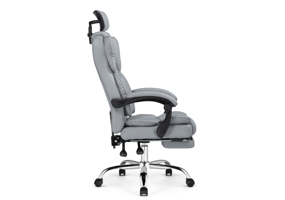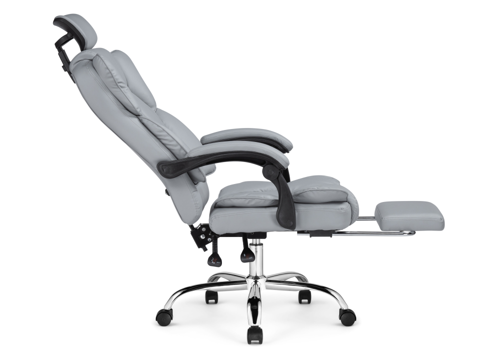 Диаметр крестовины: 64 см. Материал каркаса - Металл; Материал сиденья - Экокожа; Материал ножек - Металл; Материал обивки - Экокожа; Цвет каркаса - Хромированный металл; Цвет сиденья - Серый; Цвет ножек - Хромированный металл; Цвет обивки - Серый; Ширина - 64; Глубина - 64 - 87; Высота - 127; Ширина сиденья - 48; Глубина сиденья - 48; Высота сиденья - 48; Высота сиденья максимальная - 57; Высота максимальная - 136;