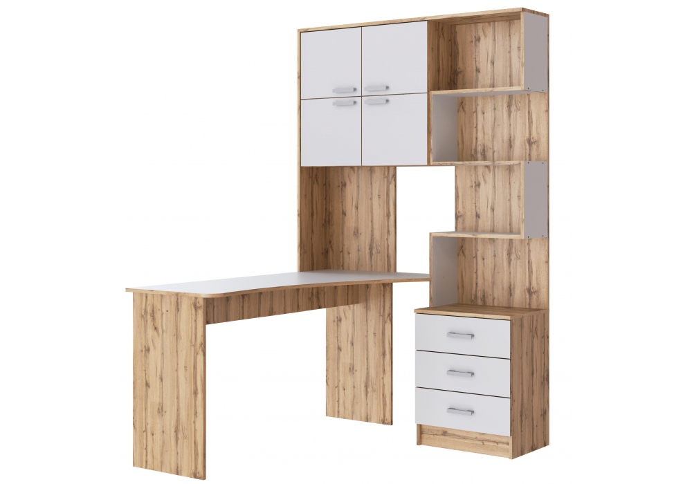 Компьютерный стол Woodville Ганор левый дуб вотан / белый 602811 в Комсомольске-на-Амуре