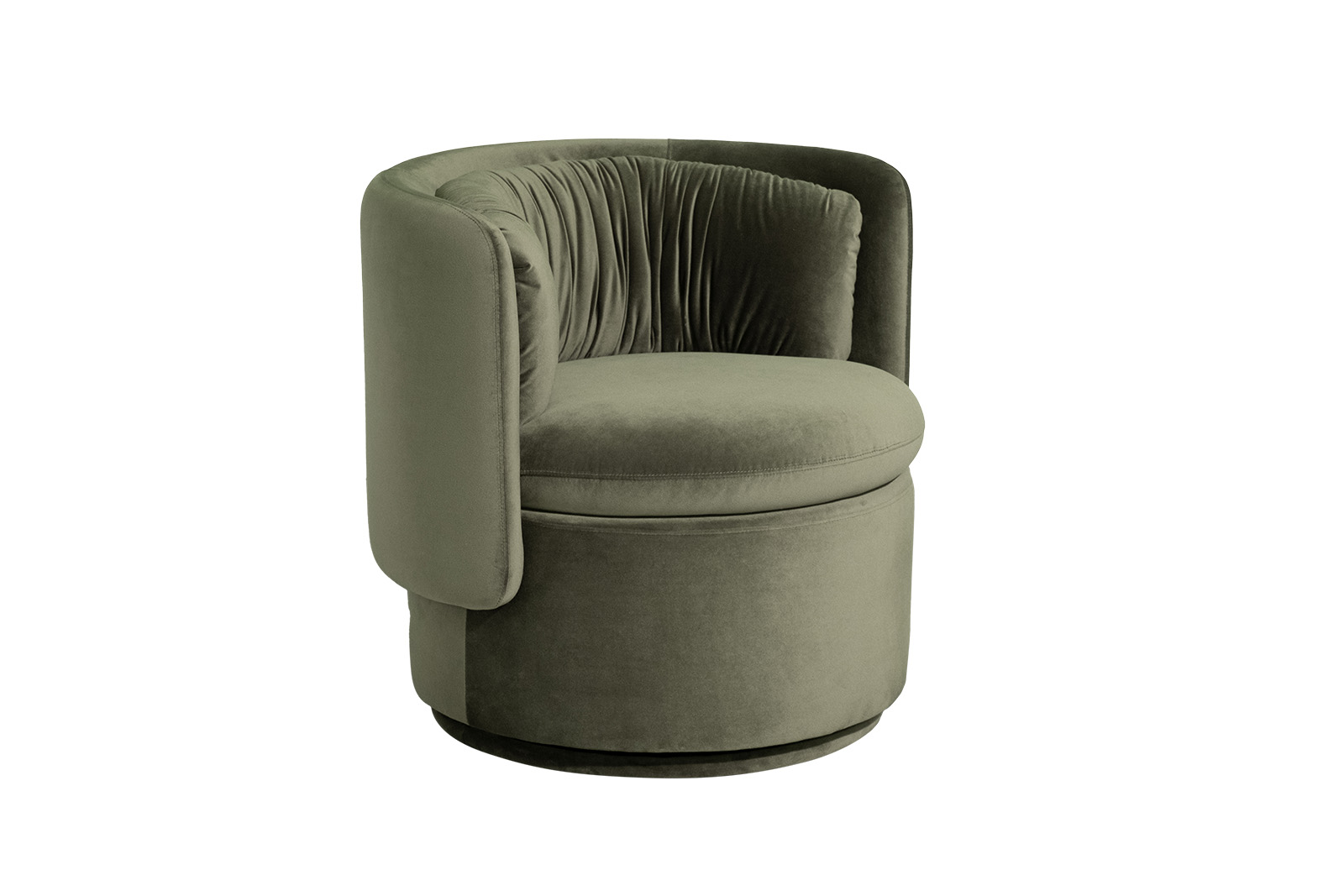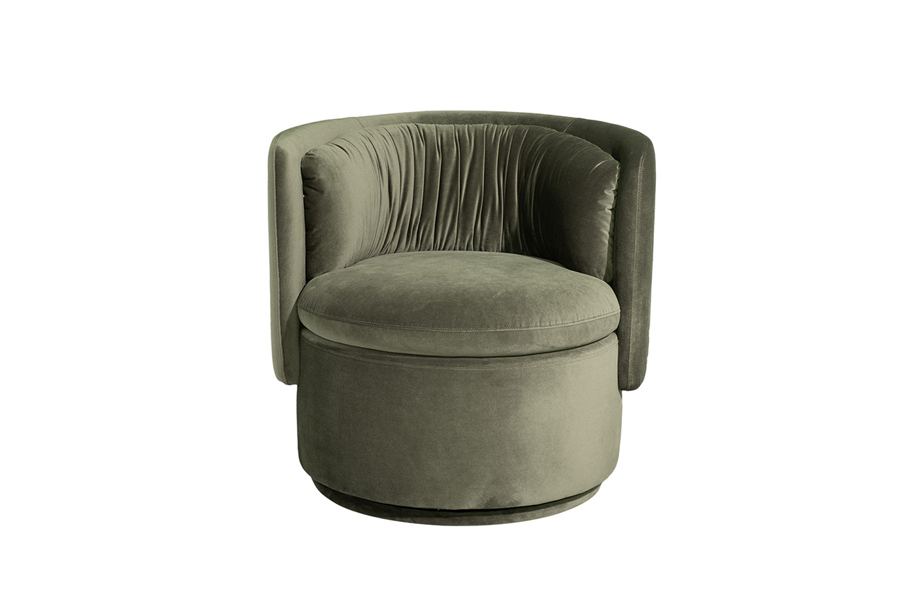 Эффектное поворотное кресло округлой формы – пример дизайнерской мебели, в которой сочетается высокий комфорт, превосходное качество исполнения и оригинальный дизайн. Эргономичная форма, низкая спинка, обивка из приятного на ощупь велюра, поворотный механизм – это зеленое велюровое кресло воплощает актуальные тренды интерьерной моды. Оно будет уместно смотреться в интерьерах ар-деко, шебби-шик, неоклассика, модерн. Благодаря каркасу из дерева и качественной обивке дизайнерское округлое кресло прослужит долгие годы.