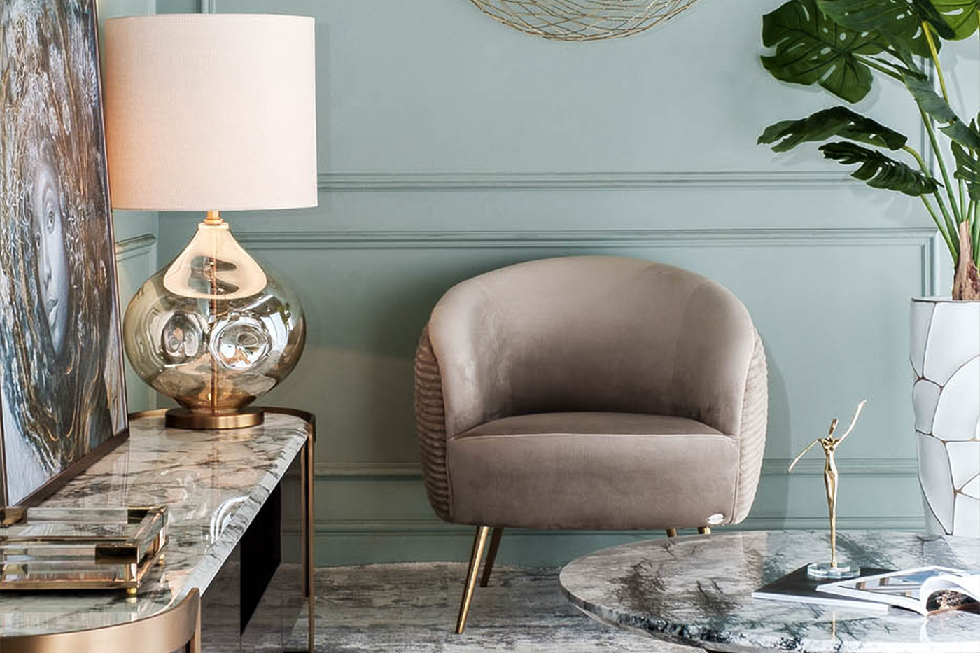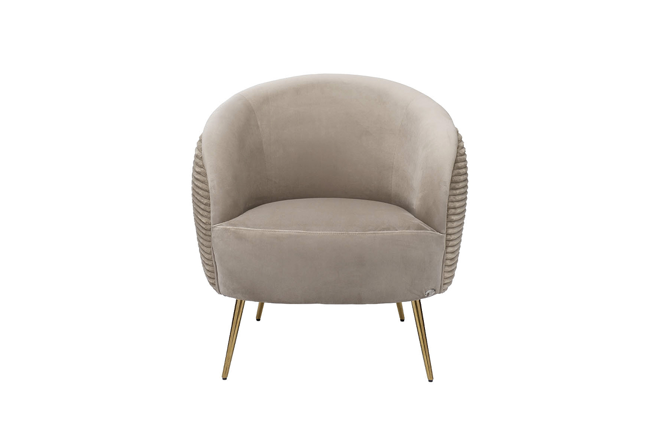 Комфортное велюровое кресло эффектно смотрится в современном интерьере ар-деко и является идеальным для отдыха. Оно найдет себе место в гостиной, спальне, кабинете, лаунж-зоне – в любом стильном пространстве. За счет мягкой обтекаемой спинки, плавно переходящей в подлокотники, дутое кресло обеспечивает максимальный комфорт и эффект «утопания». Каркас из дерева обеспечивает модели надежность и устойчивость, а позолоченные ножки из металла в стиле 50-х добавляют изящности. Бежевое кресло с обивкой из мягкого дорогого велюра составит стильную компанию дивану в аналогичной стилистике.