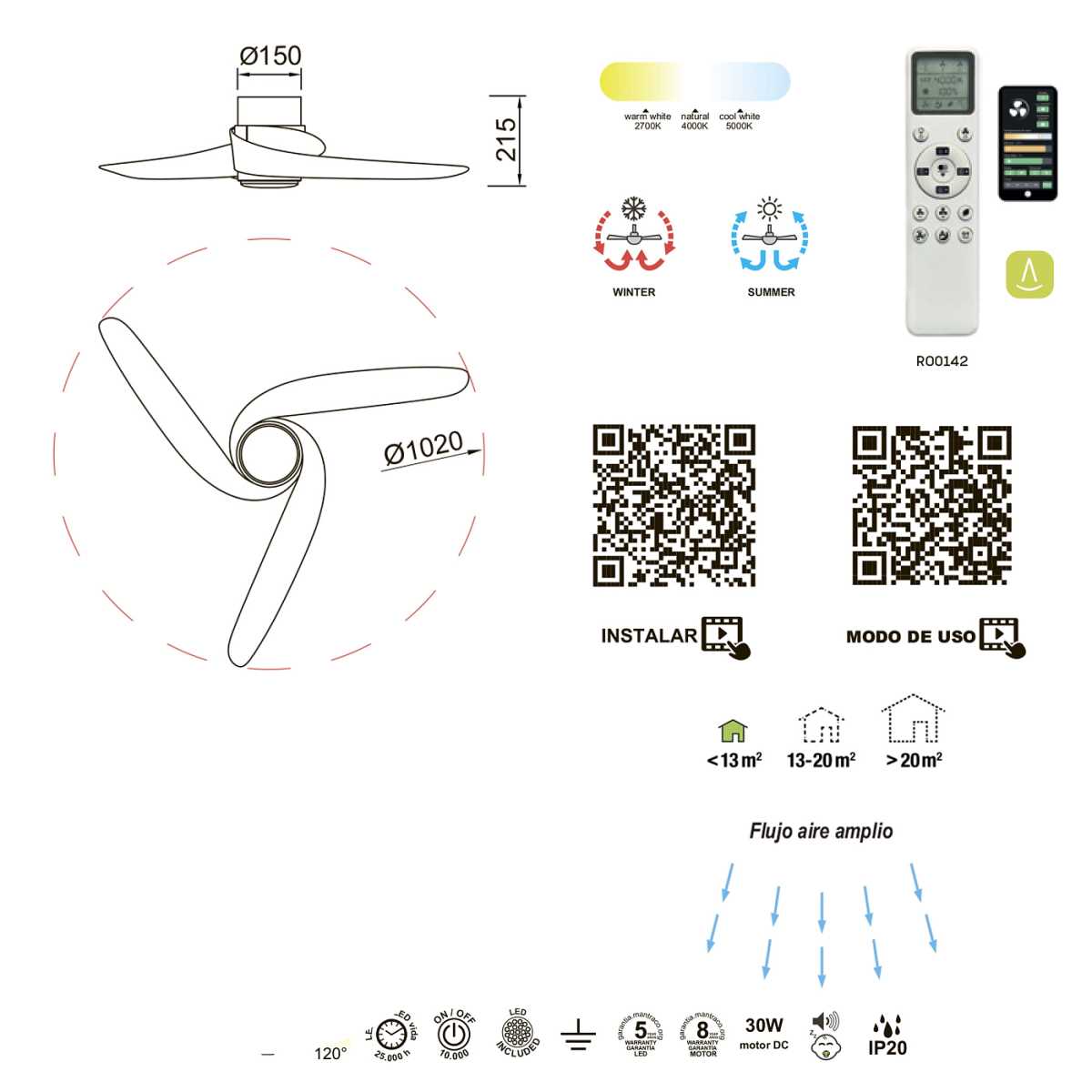 - Цветовая температура, K: 2700-5000K