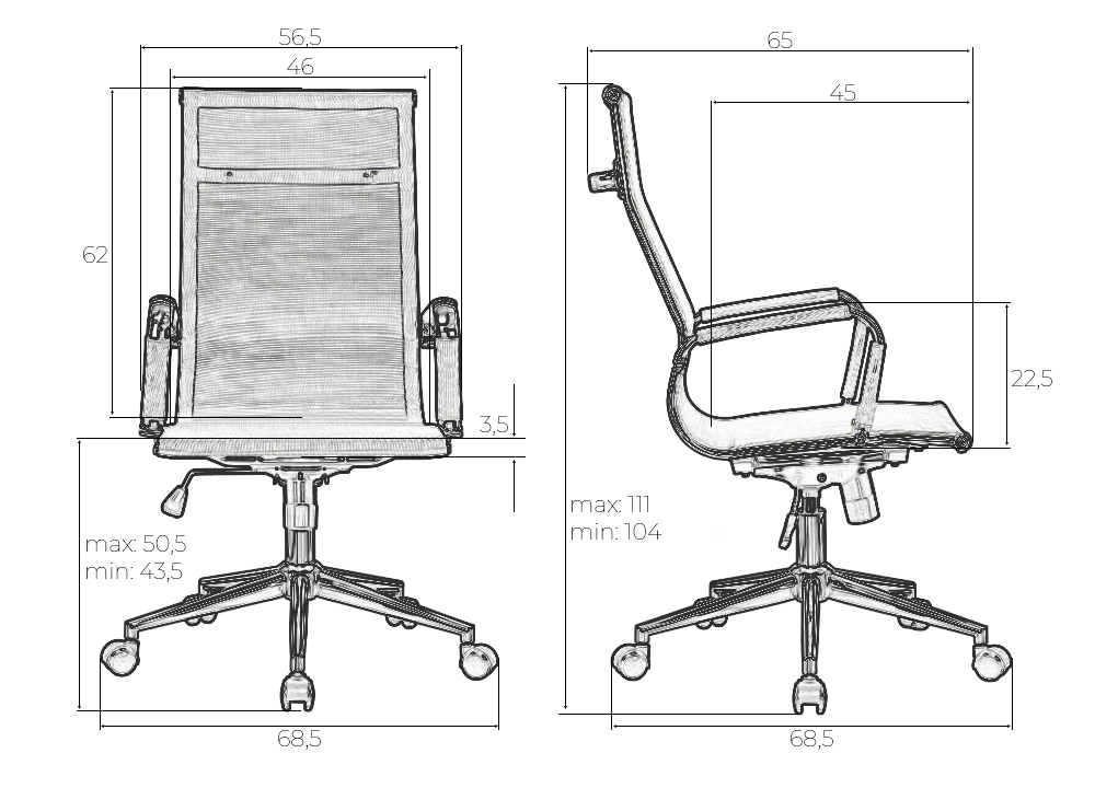 - Высота сиденья max: 505