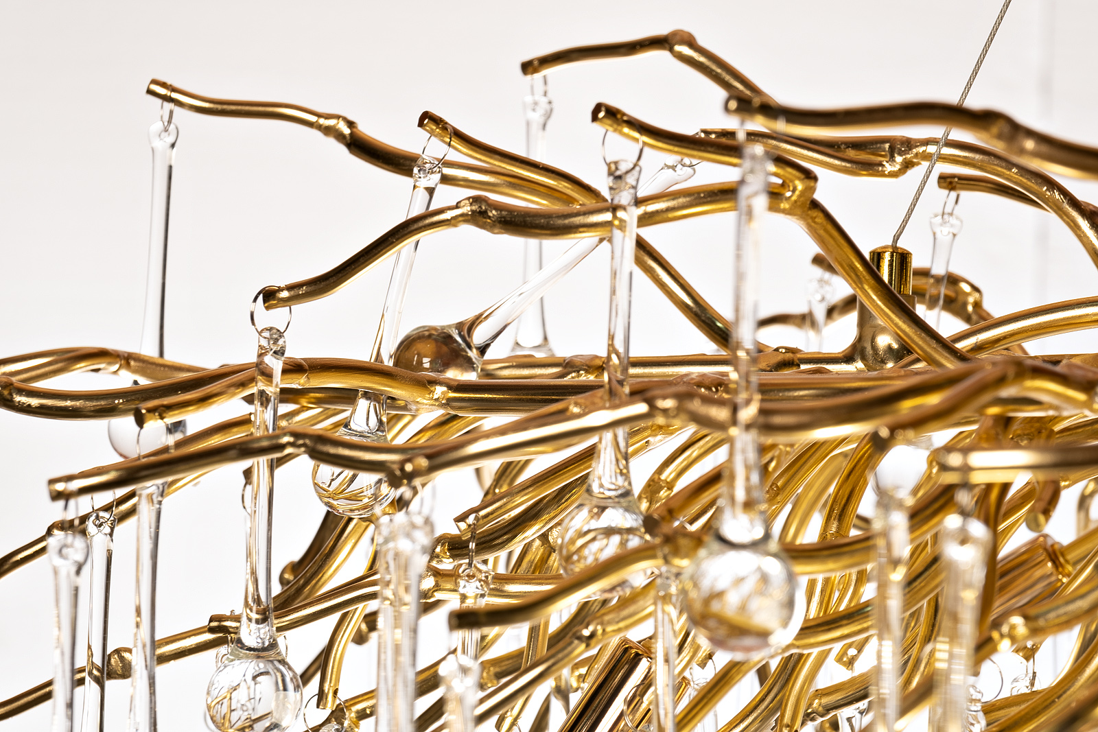 Эта люстра - воплощение элегантности и природной красоты. Золотистое основание напоминает изящные ветви дерева, с которых свисают прозрачные капли, создавая эффект утренней росы. Каждый элемент выполнен с высокой точностью, что придаёт люстре уникальный и неповторимый вид. Эта люстра придаст помещению выразительности, подчеркнет роскошество атмосферы в гостиной или столовой.