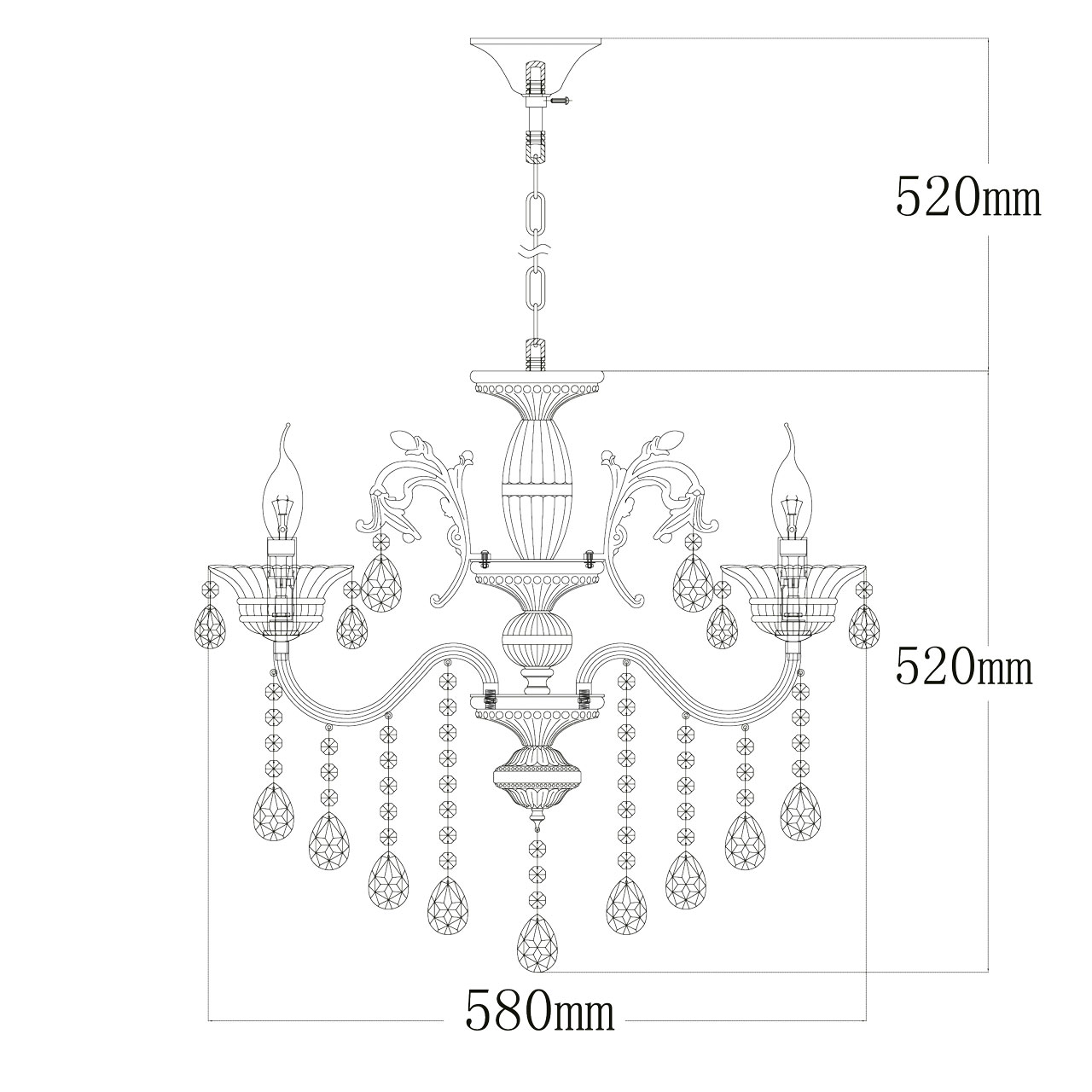 богатый декор в виде хрустальных капель, стеклянных декоративных розеток;
