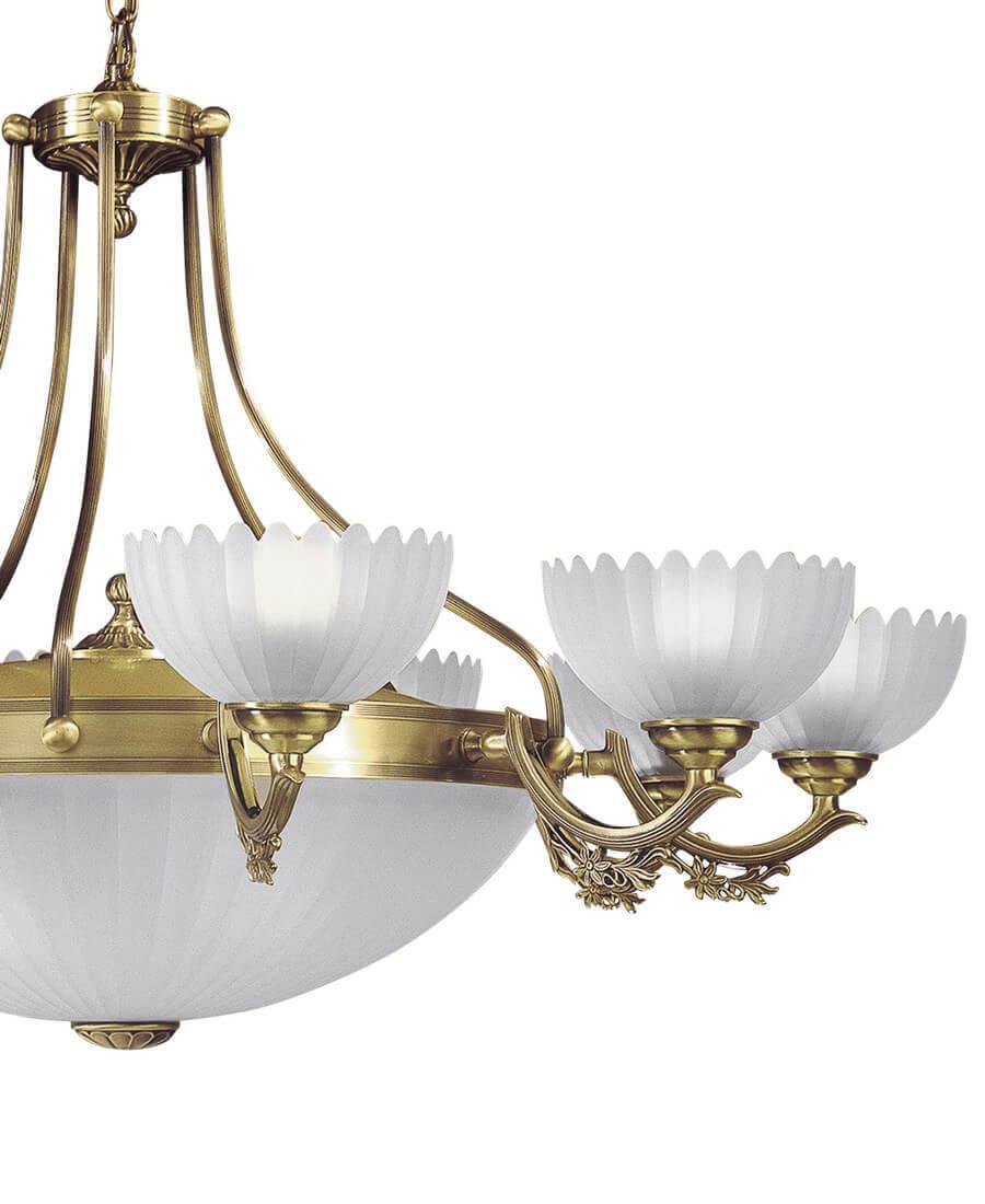 Подвесная люстра Reccagni Angelo L 3030/10+4 Итальянского производсва – уникальное сочетание высокого качества и удивительных фактур. Этот светильник Классического стиля хорошо подойдет Для гостиной и придаст помещению мягкий и приятный свет. Плафоны белые из стекла. Арматура бронза из металла. Кол-во ламп - 14шт. Общая мощность 840W
