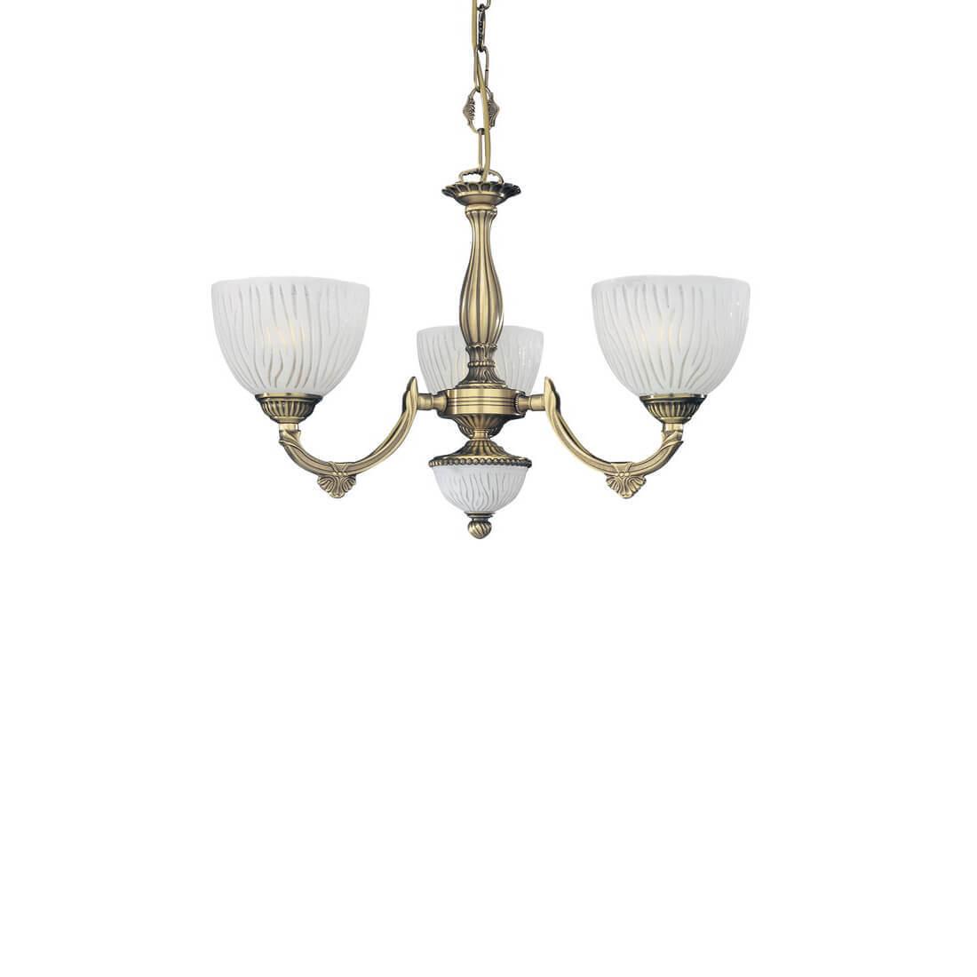 Подвесная люстра Reccagni Angelo L 5600/3 Итальянского производсва – лучшее соотношение цена-качество. Этот светильник Классического стиля хорошо подойдет Для спальни и придаст помещению мягкий и приятный свет. Плафоны белые из стекла. Арматура бронза из металла. Кол-во ламп - 3шт. Общая мощность 180W