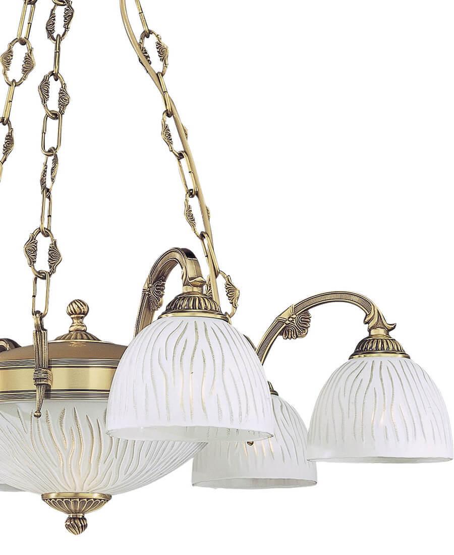 Подвесная люстра Reccagni Angelo L 5650/6+2 Итальянского производсва – лучшее соотношение цена-качество. Этот светильник Классического стиля хорошо подойдет Для гостиной и придаст помещению мягкий и приятный свет. Плафоны белые из стекла. Арматура бронза из металла. Кол-во ламп - 8шт. Общая мощность 480W