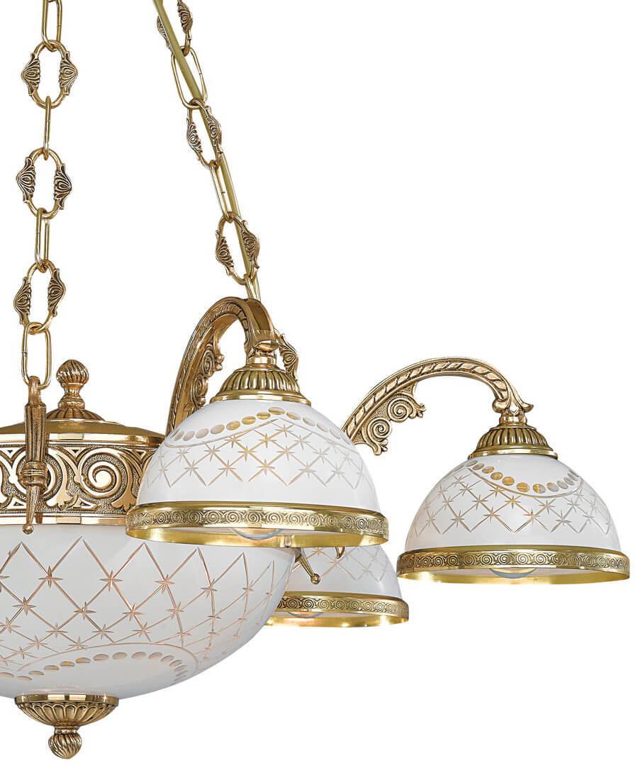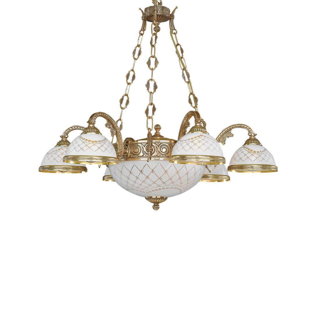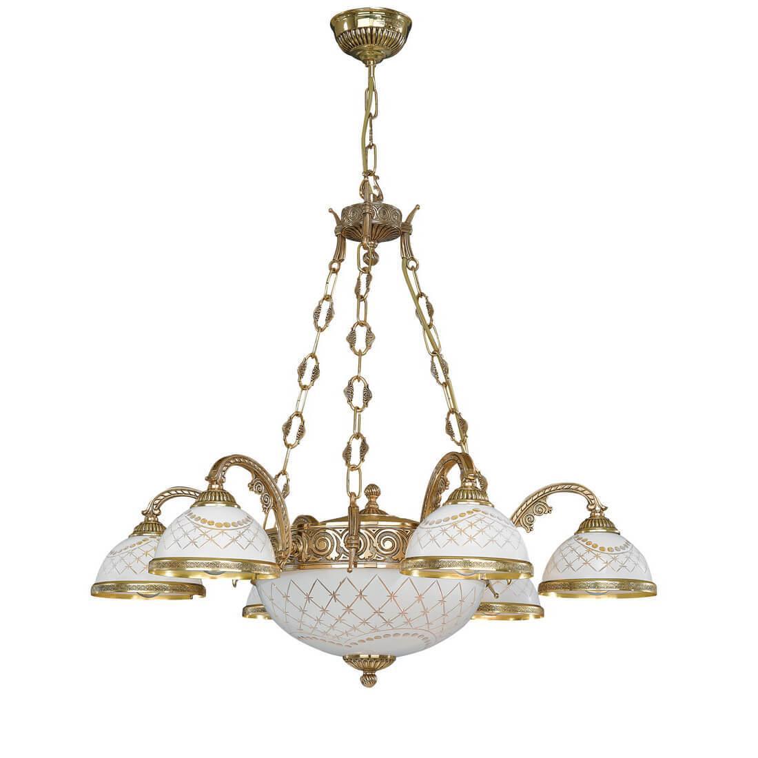 Подвесная люстра Reccagni Angelo L 7102/6+2 Итальянского производсва – уникальное сочетание высокого качества и удивительных фактур. Этот светильник Классического стиля хорошо подойдет Для гостиной и придаст помещению мягкий и приятный свет. Плафоны белые из стекла. Арматура золотая из металла. Кол-во ламп - 8шт. Общая мощность 480W