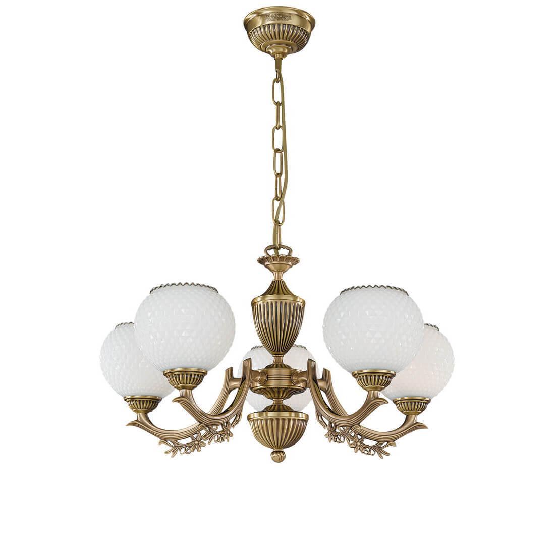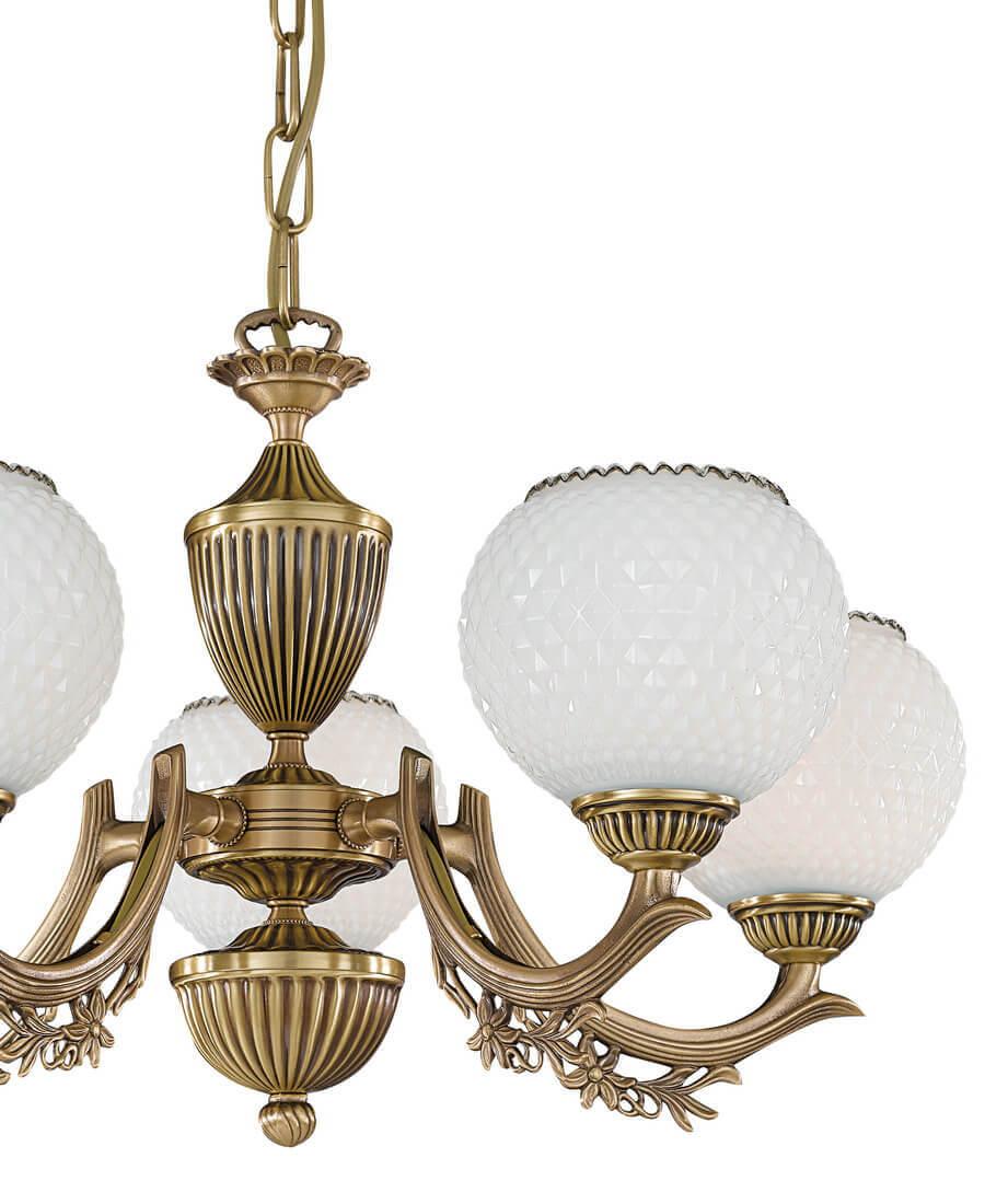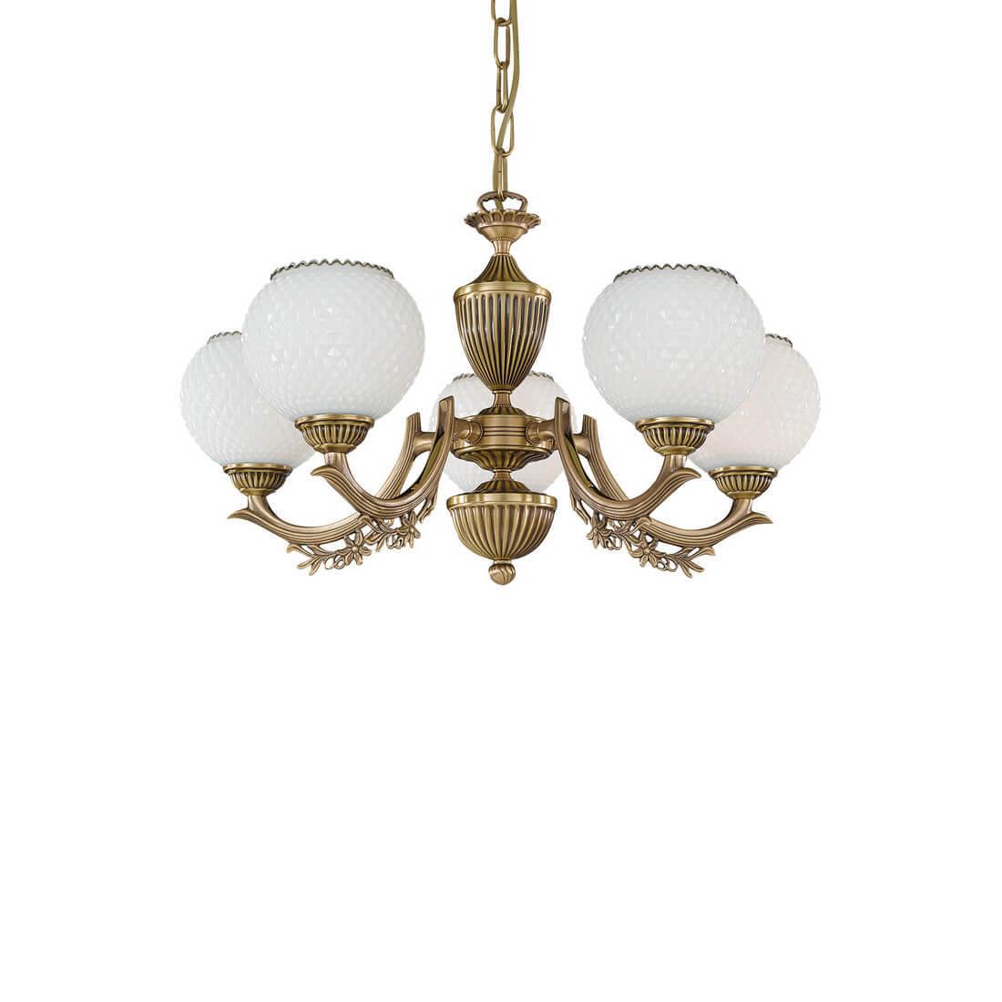 Подвесная люстра Reccagni Angelo L 8650/5 Итальянского производсва – отличный выбор для Вас. Этот светильник Классического стиля хорошо подойдет Для гостиной и придаст помещению мягкий и приятный свет. Плафоны белые из стекла. Арматура бронза из металла. Кол-во ламп - 5шт. Общая мощность 300W