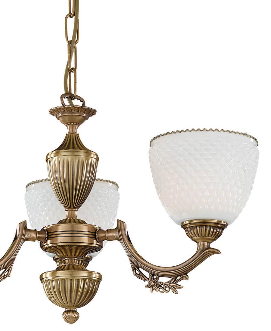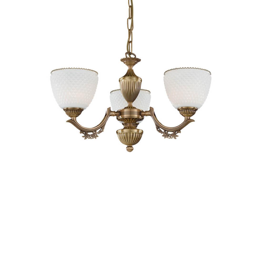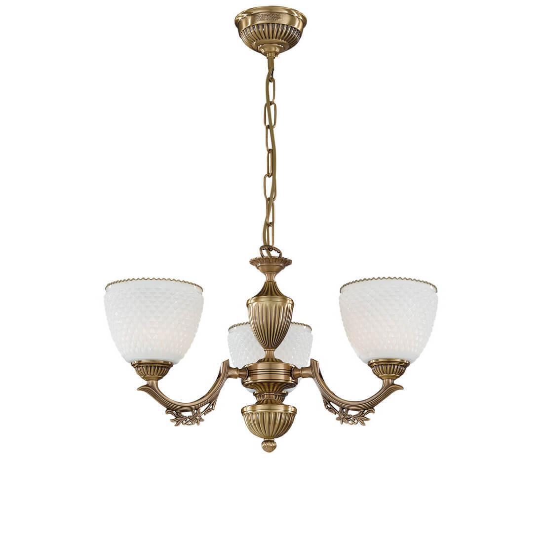 Подвесная люстра Reccagni Angelo L 8651/3 Итальянского производсва – уникальное сочетание высокого качества и удивительных фактур. Этот светильник Классического стиля хорошо подойдет Для гостиной и придаст помещению мягкий и приятный свет. Плафоны белые из стекла. Арматура бронза из металла. Кол-во ламп - 3шт. Общая мощность 180W