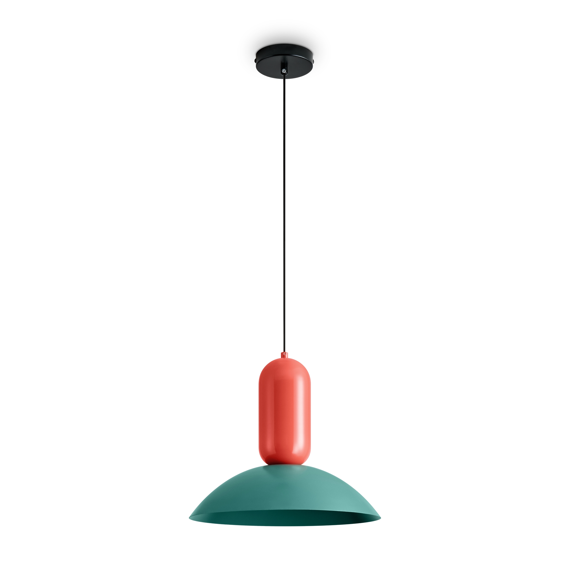 Арматура - чёрный металл.Каждый подвесной светильник окрашен в 2 цвета: серо-бежевый и жемчужно-белый, каменно-серый и белый, белый и каменно-серый. з новинки в сочетниях новых оттенков - чисто красный и мята бирюзовая.