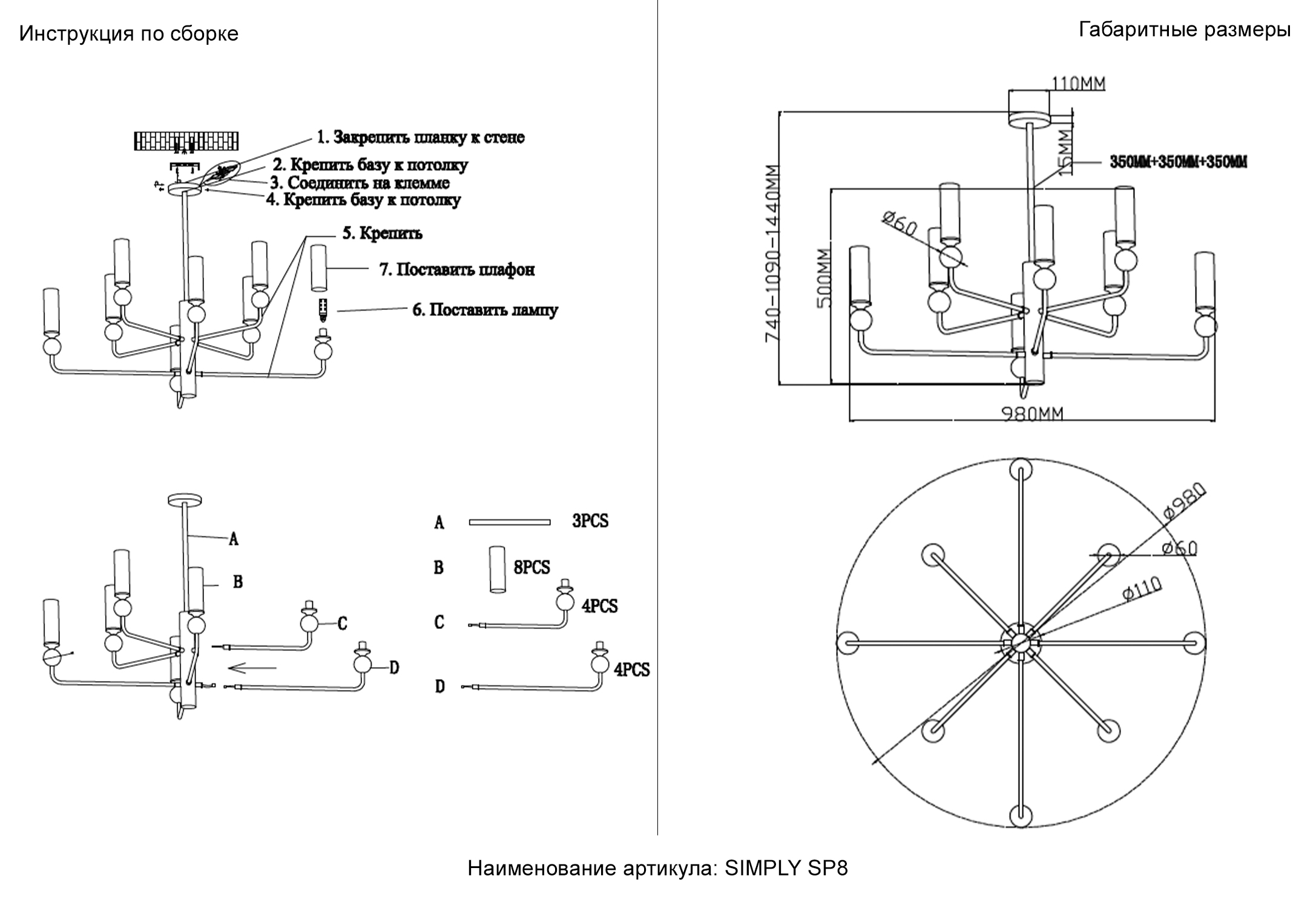 - Направление плафонов: Плафон вверх