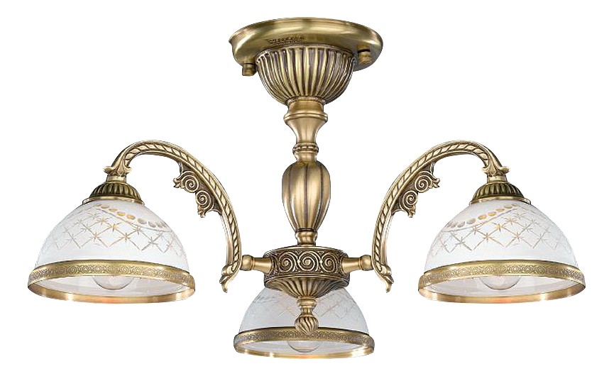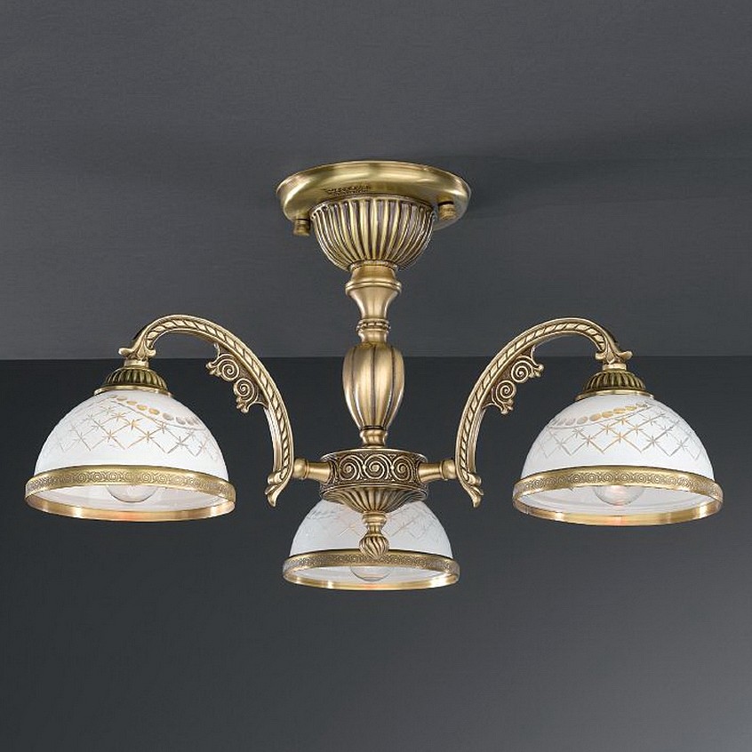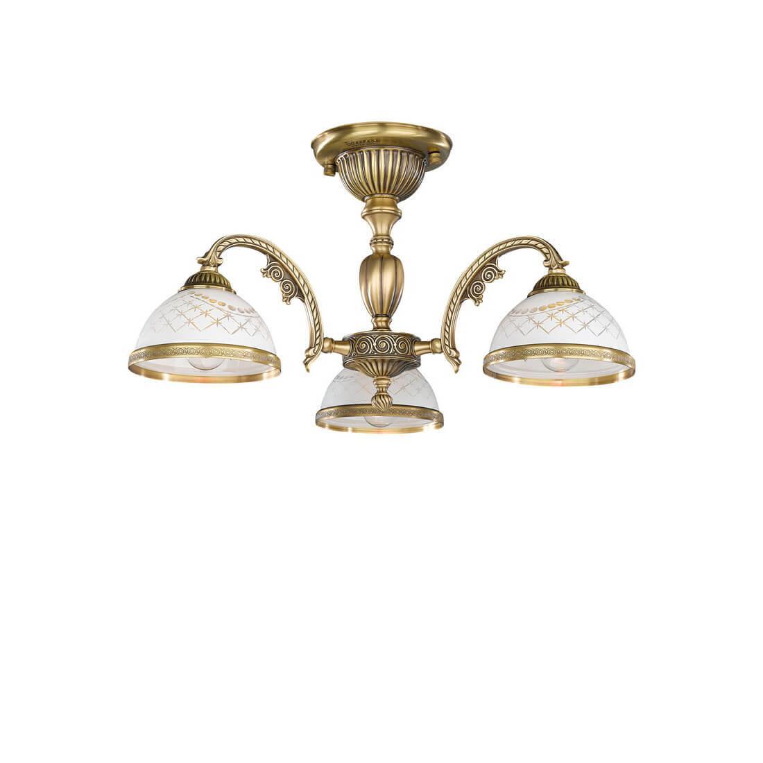 Потолочная люстра Reccagni Angelo PL 7022/3 Итальянского производсва – уникальное сочетание высокого качества и удивительных фактур. Этот светильник Классического стиля хорошо подойдет Для спальни и придаст помещению мягкий и приятный свет. Плафоны белые из стекла. Арматура бронза из металла. Кол-во ламп - 3шт. Общая мощность 180W