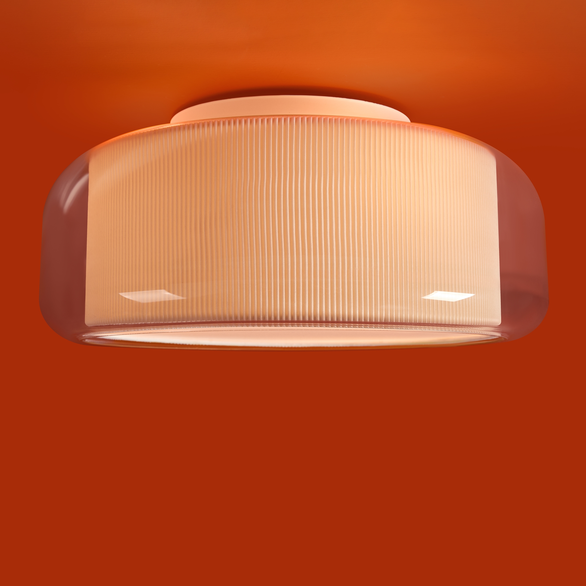 Сочетание стекла и тканевой плиссировки для мягкого рассеянного света. Лампы E27 (в комлекте). Особенность плафонов - их многослойность. В серии представлены подвесной, потолочные и настенный светильники.
