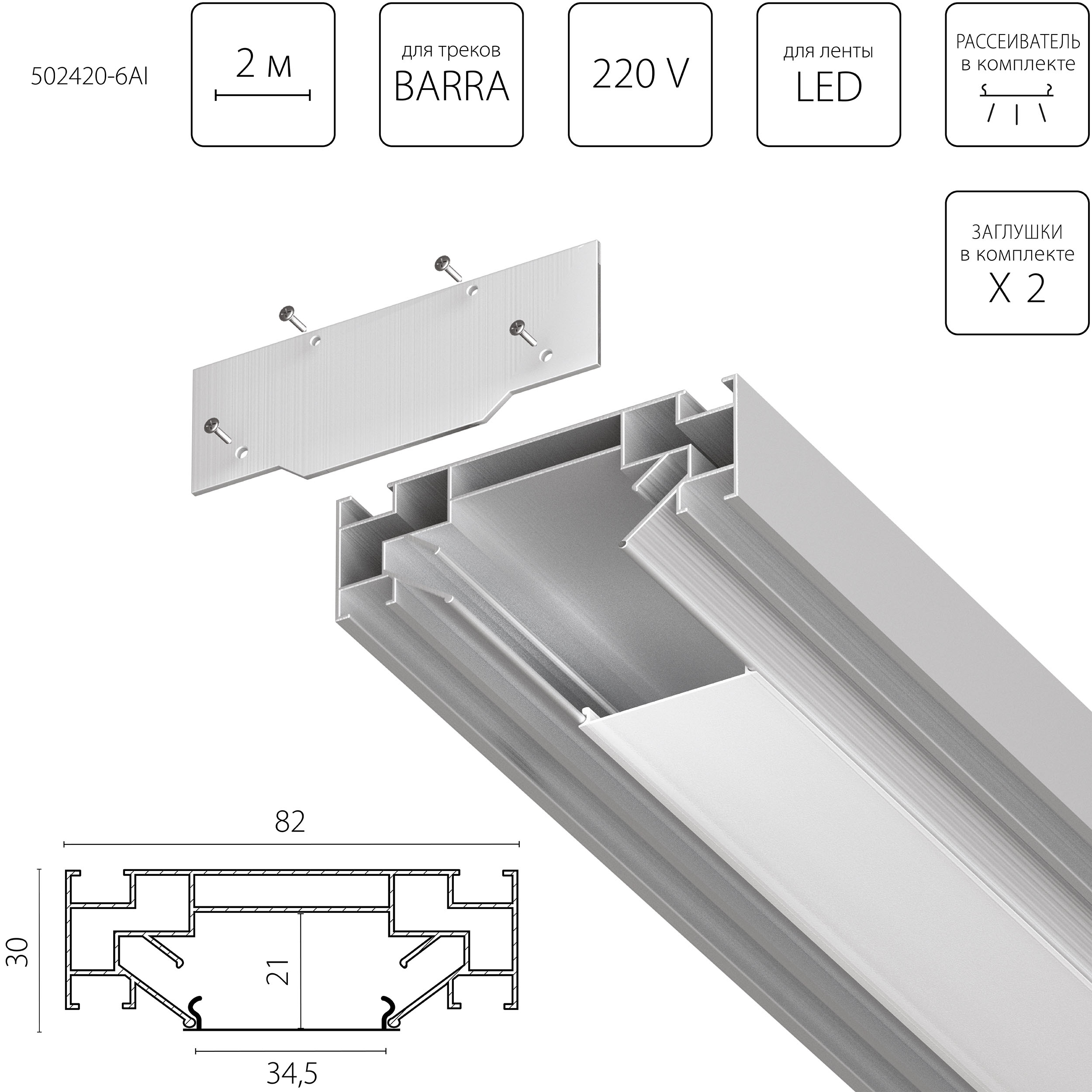 Профиль встраиваемый в натяжной потолок под LED ленту Lightstar Barra Base 502420-6AI в Комсомольске-на-Амуре