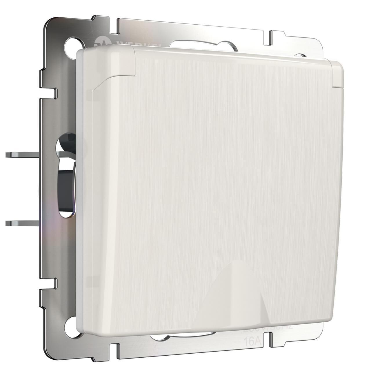 Купить "Розетка влагозащишенная с заземлением с защитной крышкой и шторками Werkel перламутровый рифленый W1171213 4690389161056"