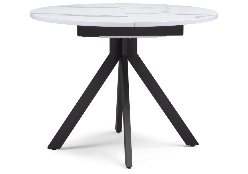 Толщина столешницы: 2,5 см. Материал каркаса - Металл; Материал ножек - Металл; Материал столешницы - ЛДСП; Цвет каркаса - Черный; Цвет ножек - Черный; Цвет столешницы - Белый мрамор; Цвет подстолья - Белый мрамор; Ширина - 100; Высота - 75; Длина стола в разложенном виде - 130; Длина - 100;