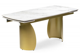 Керамический стол раскладной Woodville Блэкберн 160(220)х89 белый gilt white / черный 612182