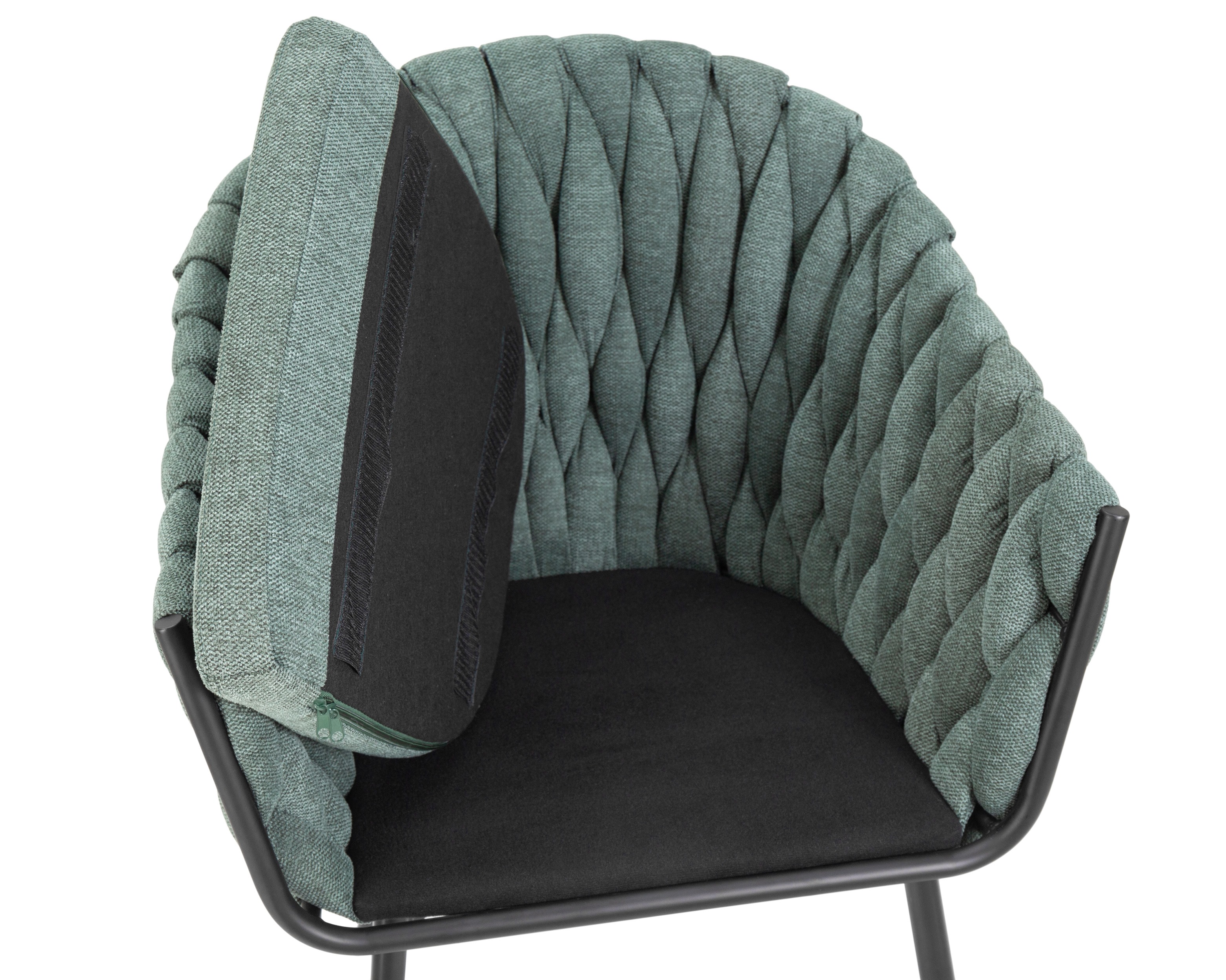 - Цвет сиденья: зеленая ткань
