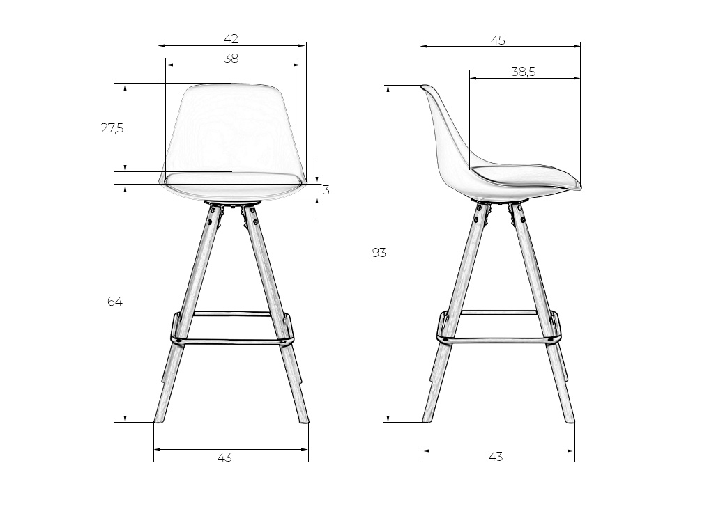 - Глубина сиденья: 385 мм
