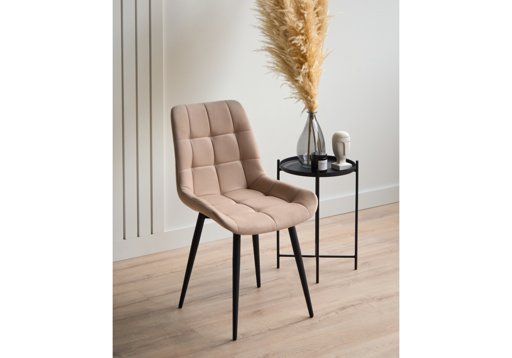 Материал каркаса - металл; Материал сиденья - велюр; Материал обивки - велюр; Цвет ножек - черный; Ширина - 50; Глубина - 60; Высота - 80; Ширина сиденья - 44; Глубина сиденья - 41; Высота сиденья - 48;