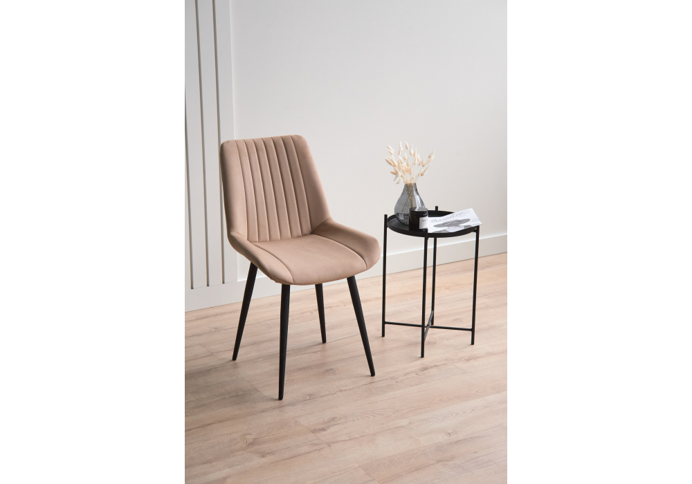 Материал каркаса - металл; Материал сиденья - велюр; Материал обивки - велюр; Цвет ножек - черный; Ширина - 50; Глубина - 56; Высота - 82; Ширина сиденья - 47; Глубина сиденья - 42; Высота сиденья - 48;