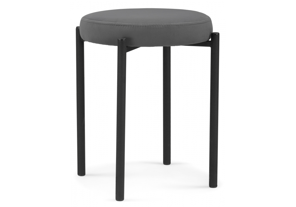 Материал каркаса - Металл; Материал сиденья - Велюр; Материал ножек - Металл; Материал обивки - Велюр; Цвет каркаса - Черный; Цвет сиденья - Серый; Цвет ножек - Черный; Цвет обивки - Серый; Ширина - 40; Глубина - 40; Высота - 46; Ширина сиденья - 35; Глубина сиденья - 35; Высота сиденья - 46