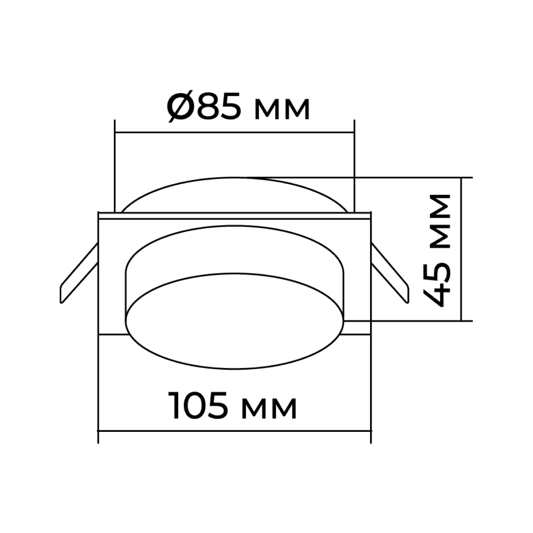 - Диаметр врезного отверстия: 85 мм (8.5 см)