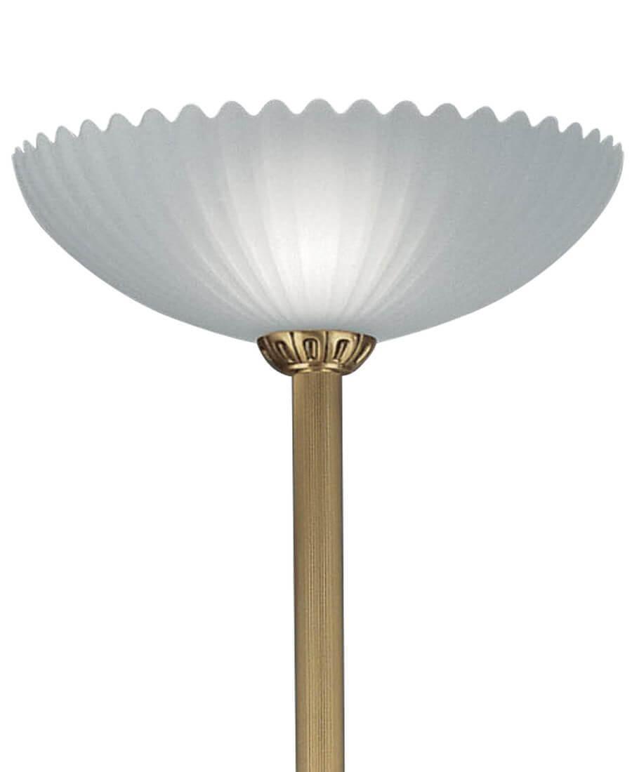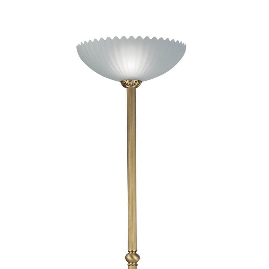 Шикарная модель бронзового цвета произведена из металла. Плафон - конусный, выполнен из стекла. Стиль торшера - классика,  его можно использовать для спальни,  создаст уют и камерность, может служить, как для декоративного освещения, так и для функционального освещения места для чтения книги, например.