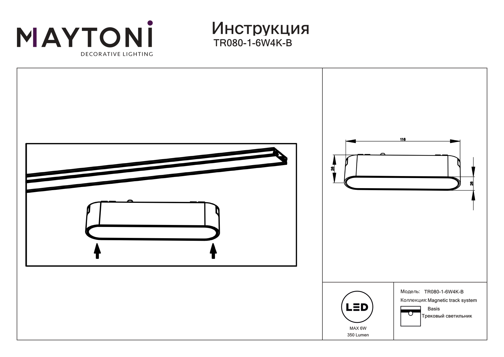 Купить "Трековый магнитный светодиодный светильник Maytoni Basis TR080-1-6W4K-B"