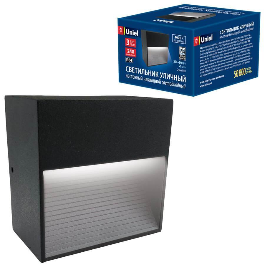 Купить "Уличный настенный светодиодный светильник (UL-00006804) Uniel ULU-S03A-3W/4000K IP54 Black"